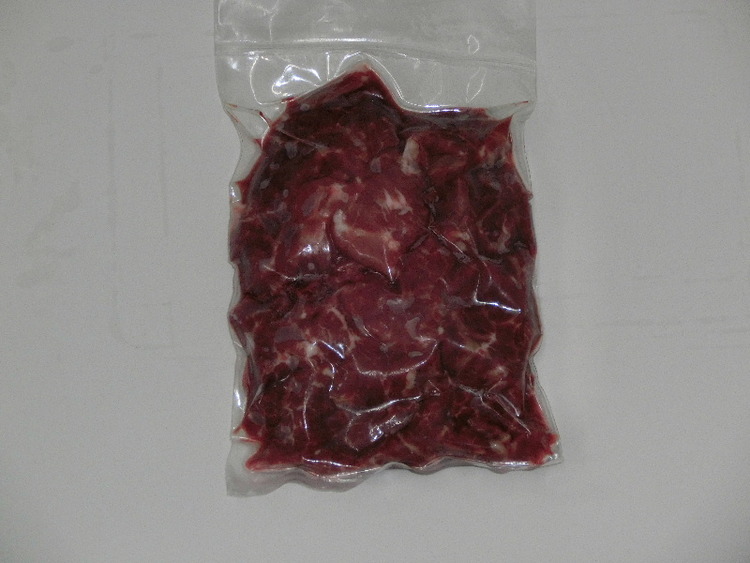 スネ肉の約2cm位の角切りです。煮込み料理、カレー・シチュウー等に使います。1パック約300g位にしています。
